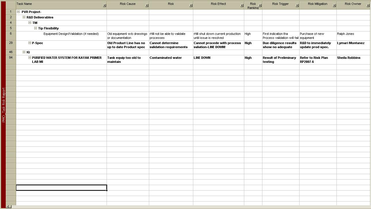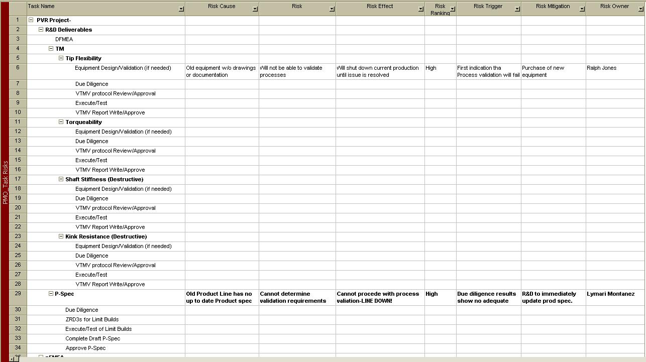 Fig. 4 Microsoft Project template PMO Task Risks screen shot