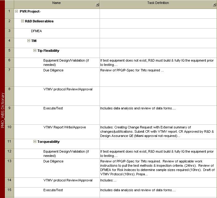 Fig. 6 Microsoft Project template PMO WBS Dictionary screen shot